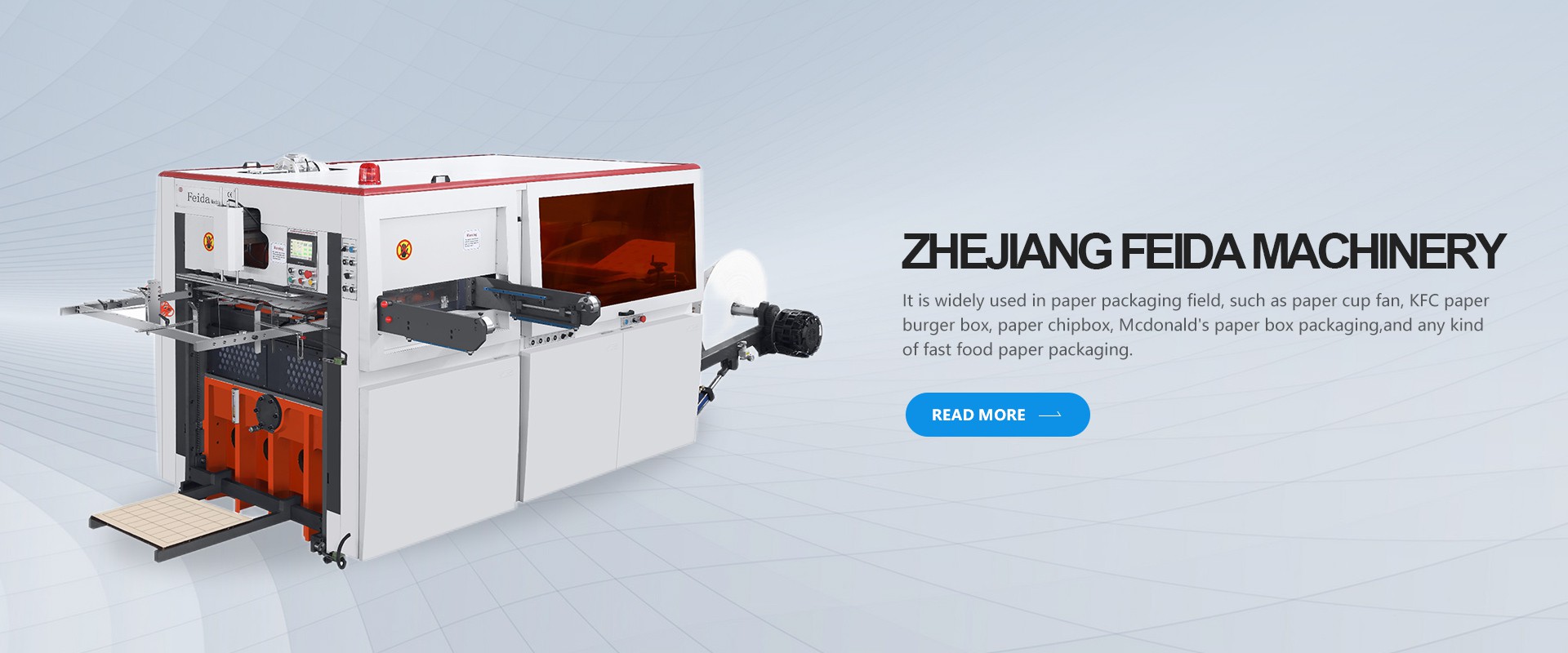 Zhejiang Feida Machinery Co., Ltd는 전자동 롤 평판 다이 커팅 머신, 엠보싱 머신, 크리징 머신 및 에코 컨테이너용 스트리핑 머신(예: 종이)의 연구 개발, 제조, 판매 및 애프터 서비스에 중점을 둔 기업입니다. 잔물결 컵, 종이 그릇, 재활용 종이 제품, 종이 아이스크림 컵, 종이 칩 상자, 고품질 종이 일회용 컵, 종이 컵 공백, 종이 컵 슬리브 등. Feida는 6000m2를 커버하며 연간 200대의 기계를 제조할 수 있습니다.